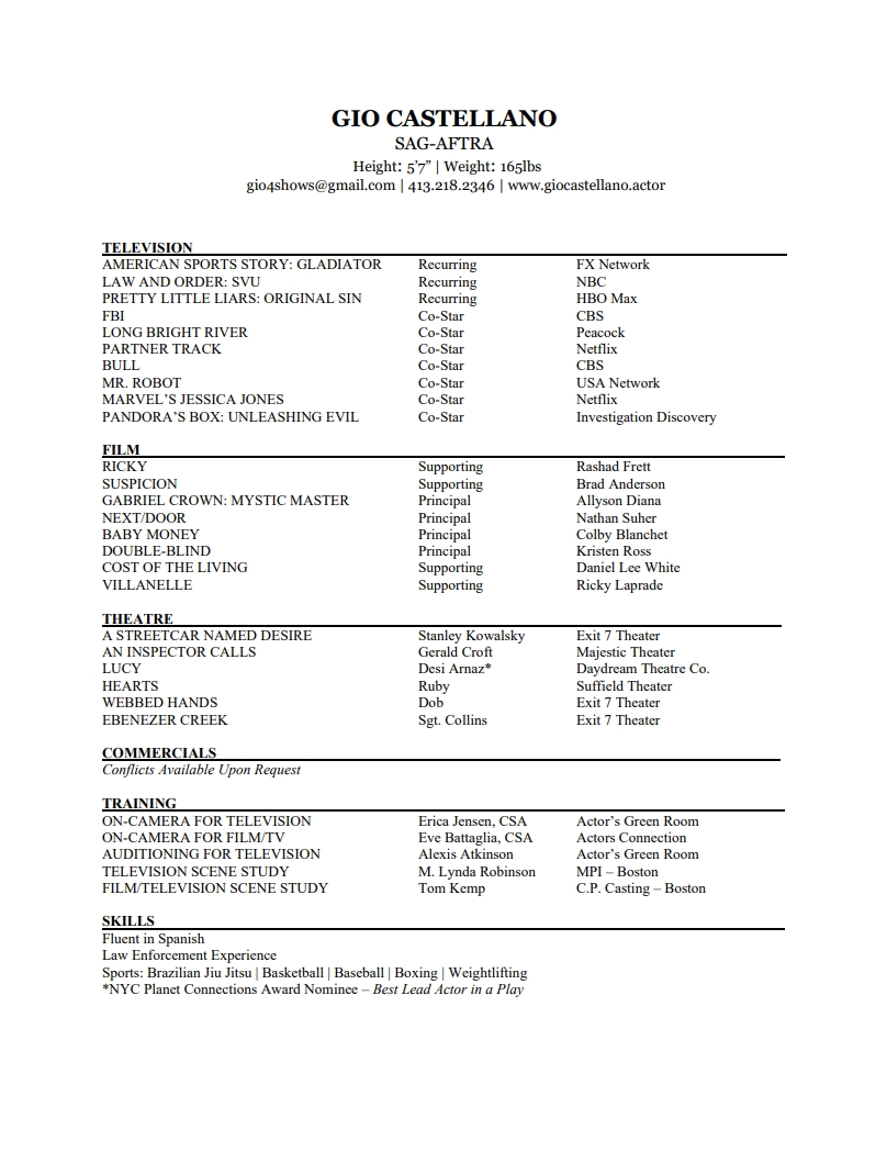 Gio recently booked a role in a TV Pilot on FX.